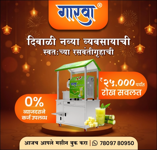 आजच कंपनीला भेट द्या आणि आपले रसवंती मशीन बुक करून दिवाळीच्या शुभमुहूर्तावर सुरू करा तुमच्या व्यवसायाची नवी वाट!